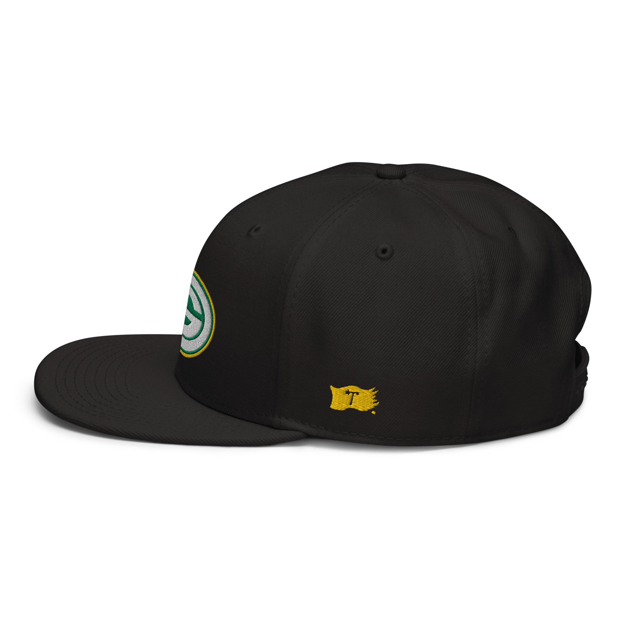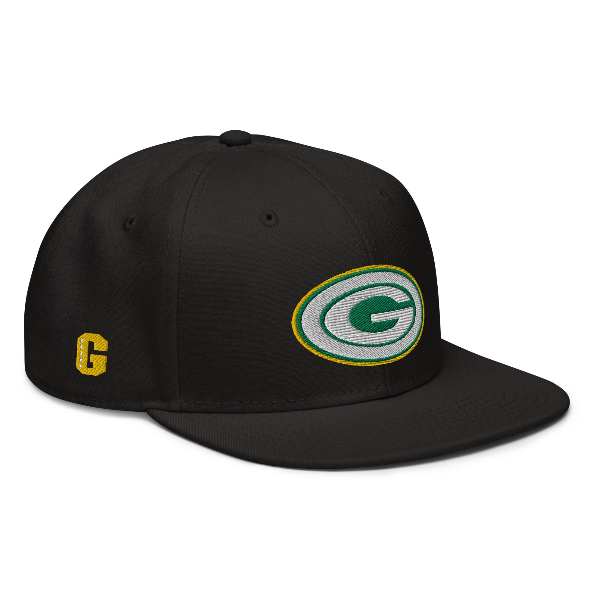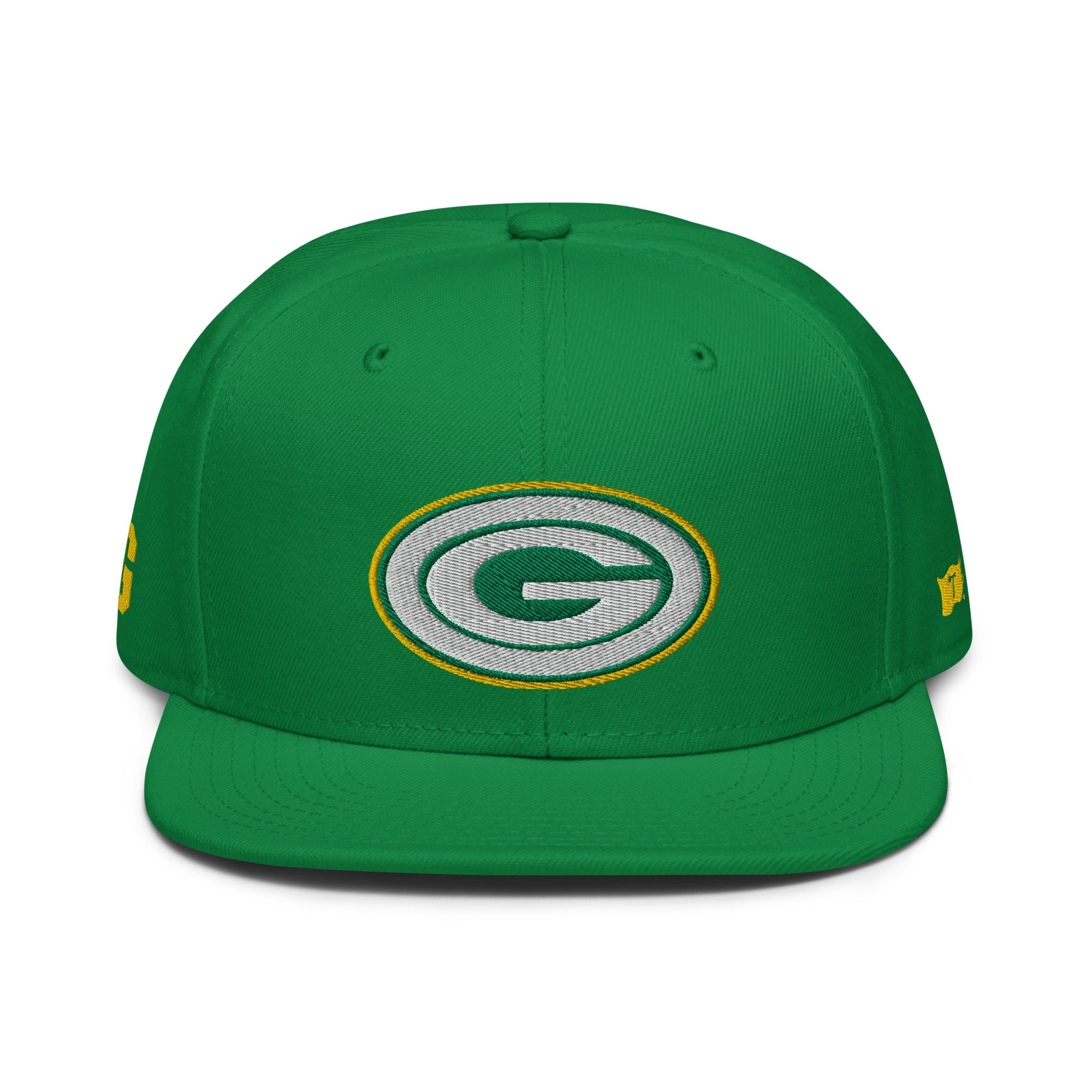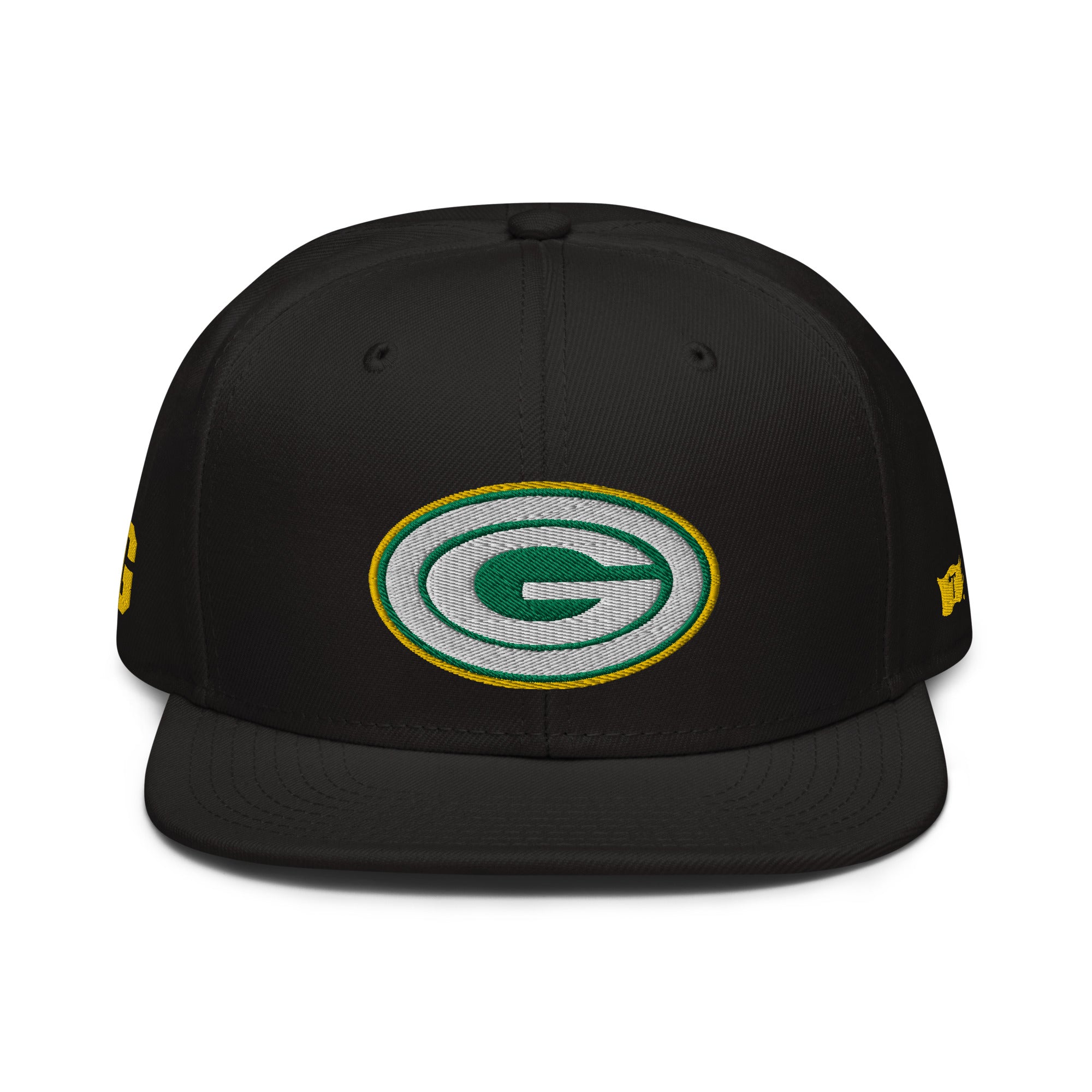 Embroidered logos on front, sides and back