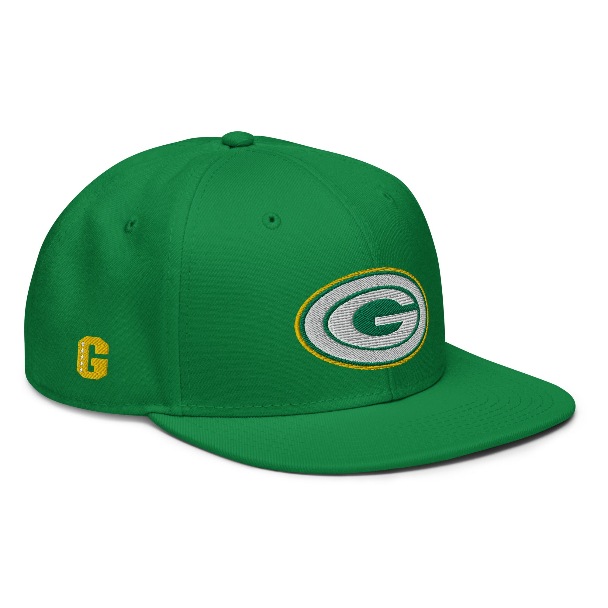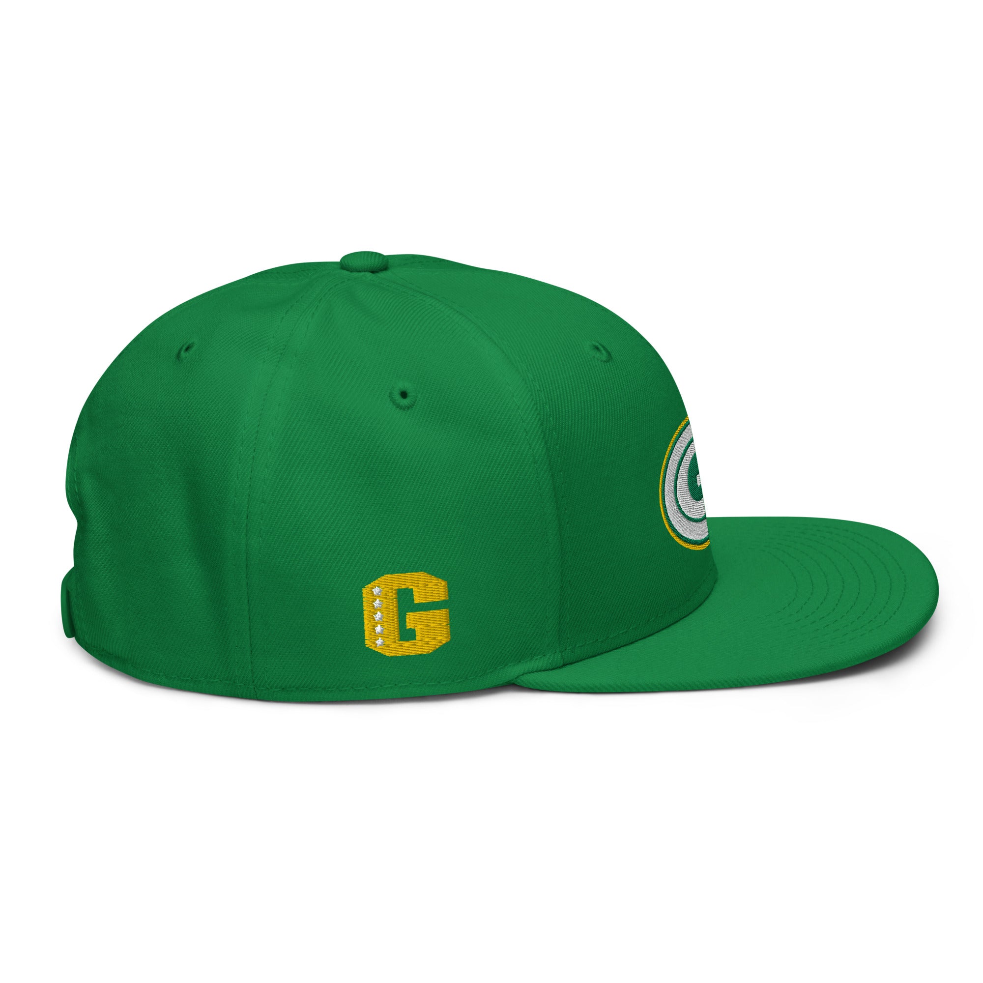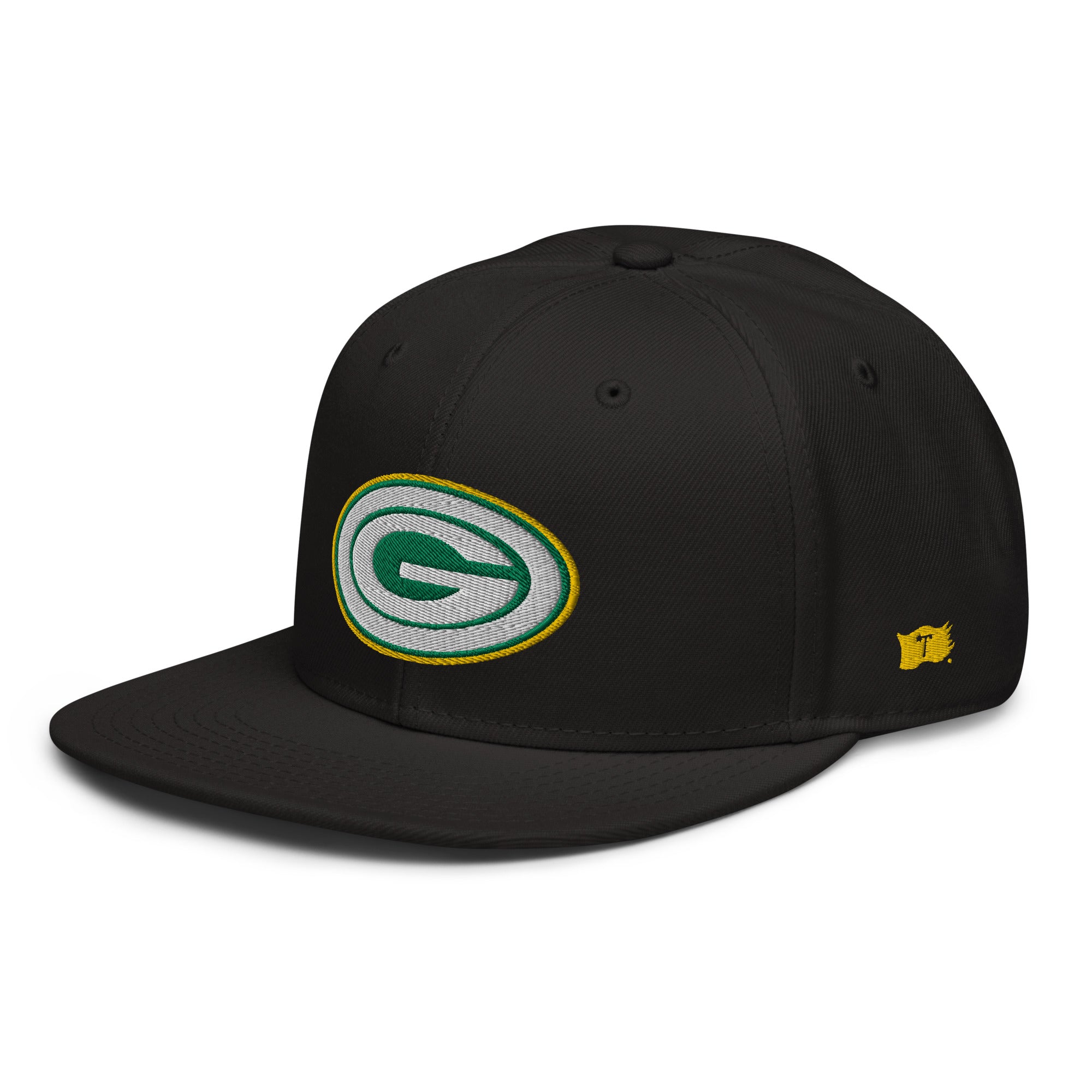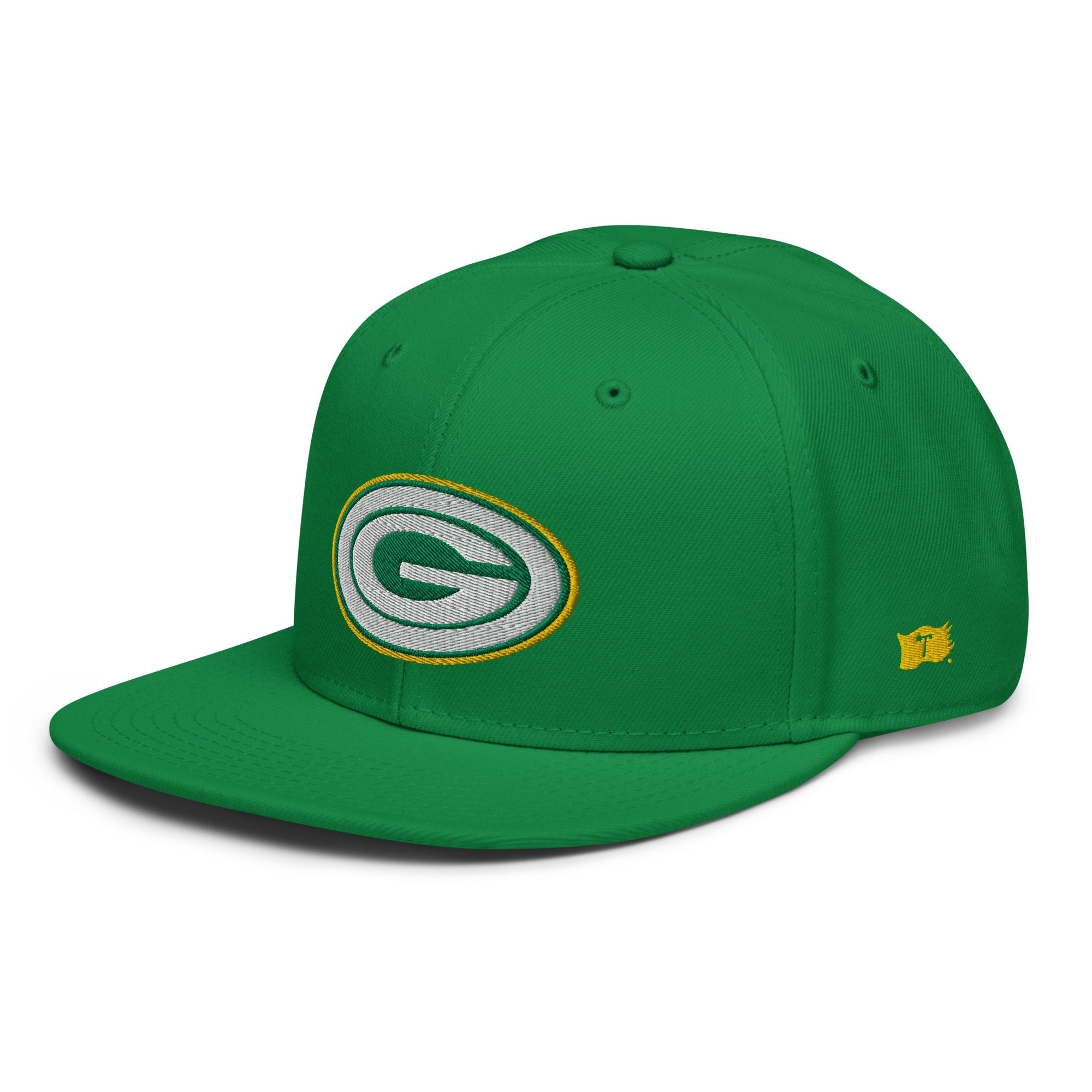 Embroidered logos on front, sides and back